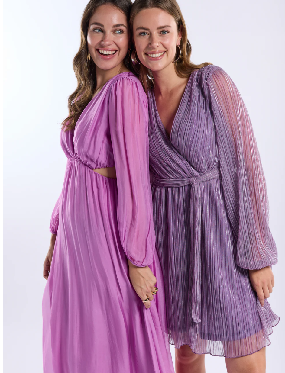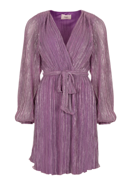 Dit stijlvolle korte jurkje is uitgevoerd in een jersey plissé kwaliteit met een subtiel lurexdraadje dat zorgt voor een elegante glans. De vrouwelijke V-hals met overslagdetail creëert een flatterende pasvorm, terwijl de soepel vallende stof mooi met het lichaam meebeweegt. Een verfijnd item dat perfect is voor feestelijke gelegenheden of een chique avondlook.