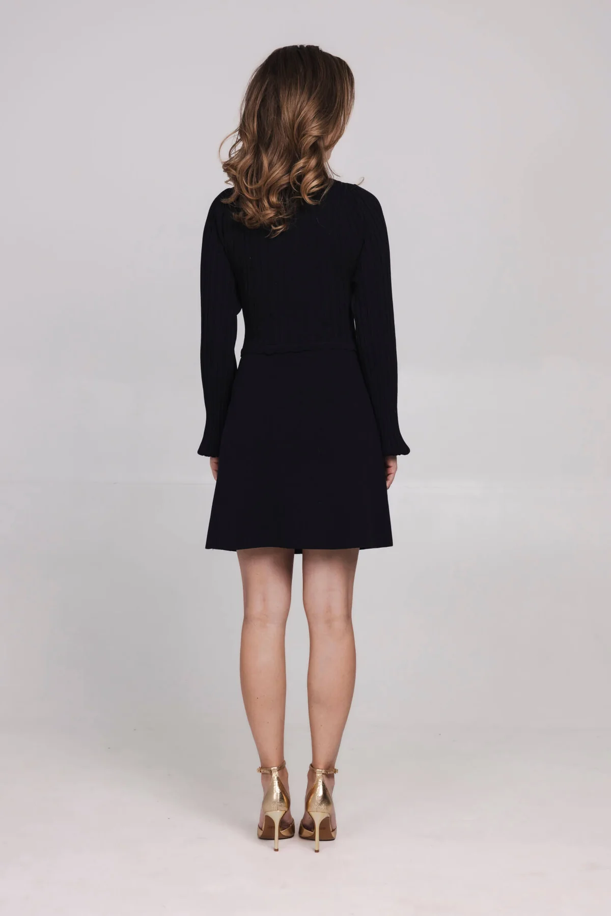 De Accentil Eline dress in de kleur donkerblauw is gemaakt van 80% Viscose, 10% Nylon en 10% Elastaan met Accentil branded gouden knopen. De Eline dress heeft een getailleerde pasvorm, golvende randen aan de hals en op de polsen en heeft een mooi split detail aan de onderzijde van de jurk. De Eline dress is dé musthave in je garderobe voor iedere gelegenheid! Combineer de Eline dress met de Liselot Cardigan door hem om te knopen of cropped op de jurk te dragen voor een casual look! Vergeet niet om onze AC oorbellen met de passende kleur bedels van dit item toe te voegen waardoor je jouw outfit helemaal afmaakt!