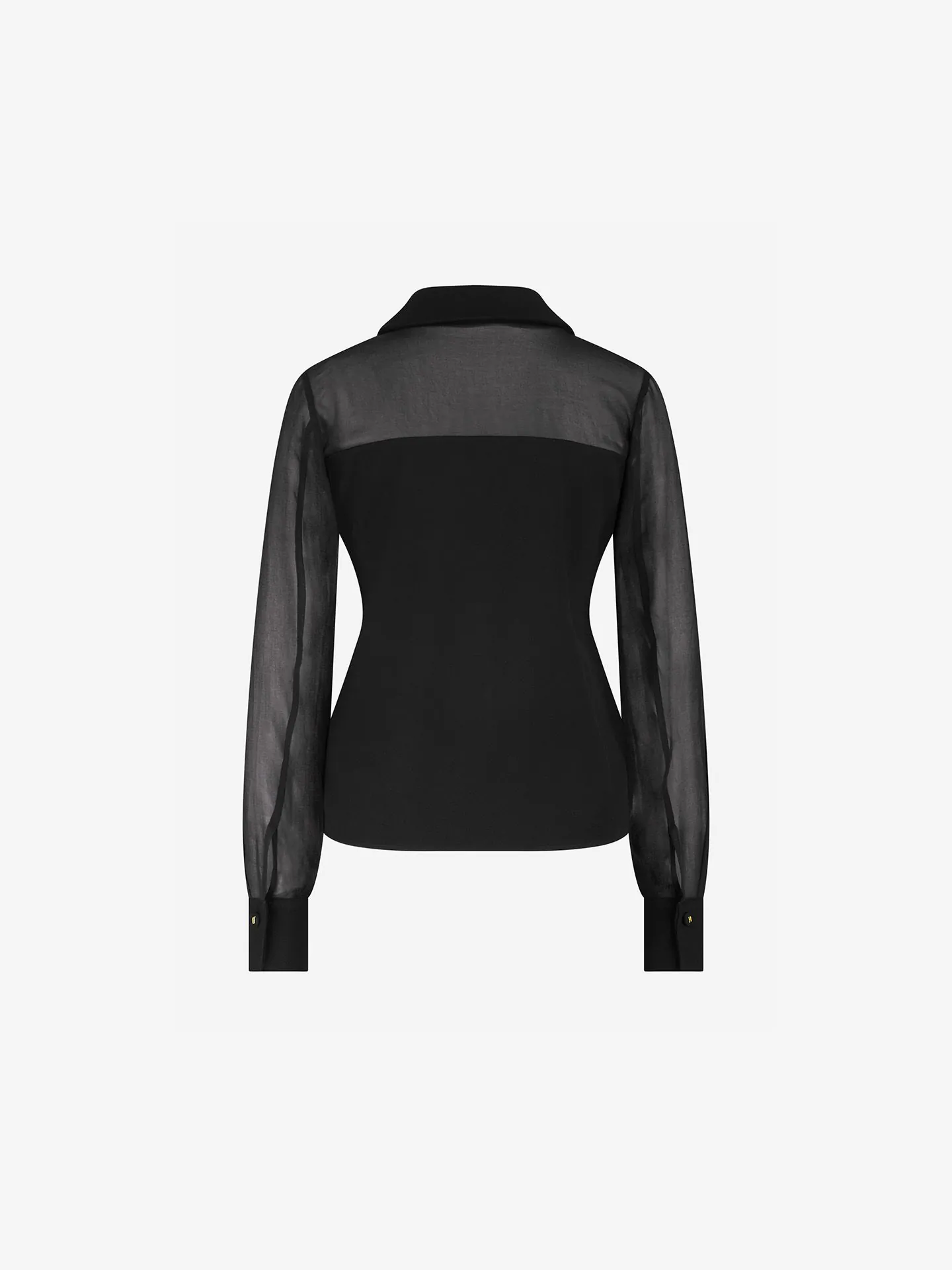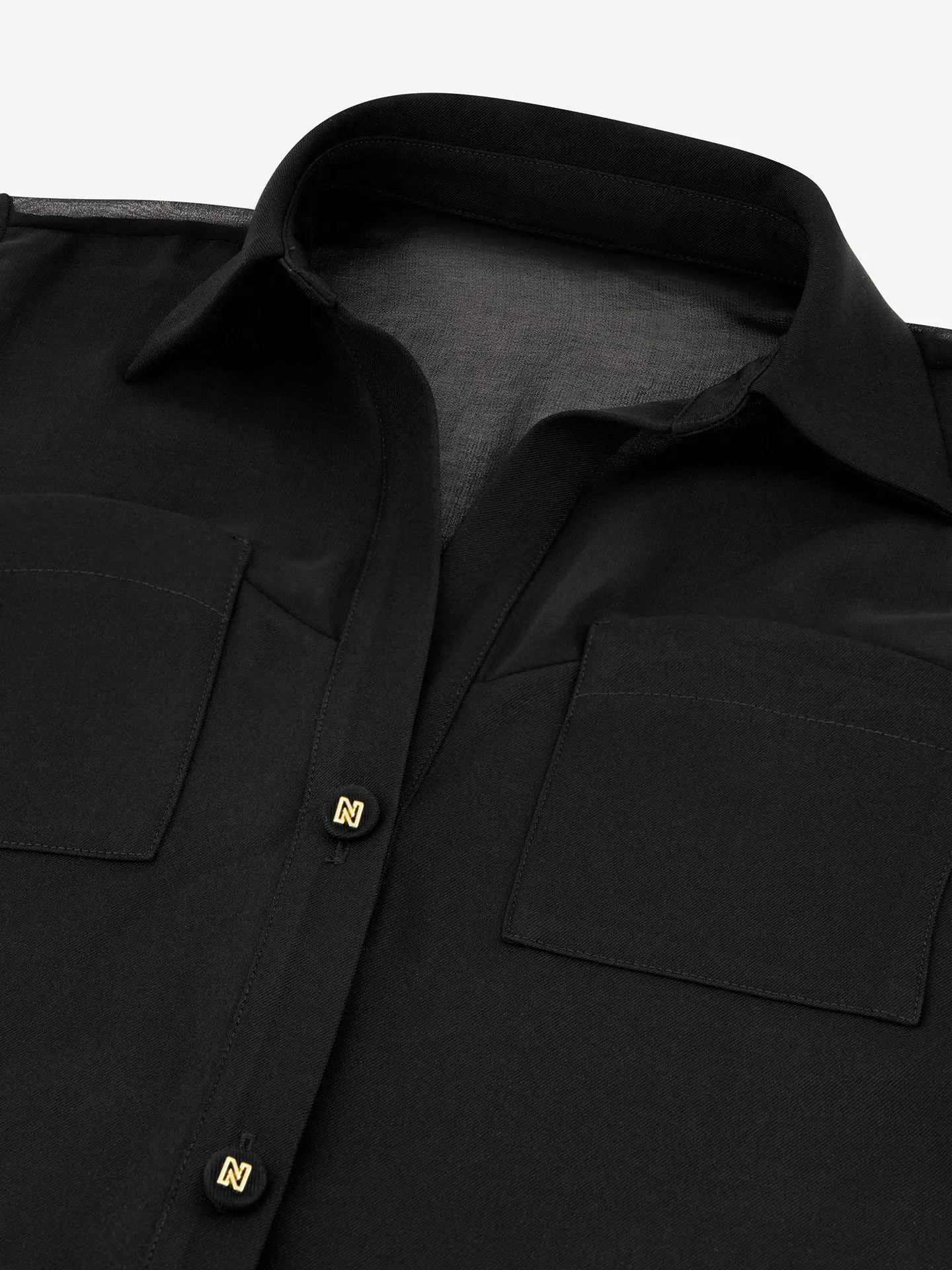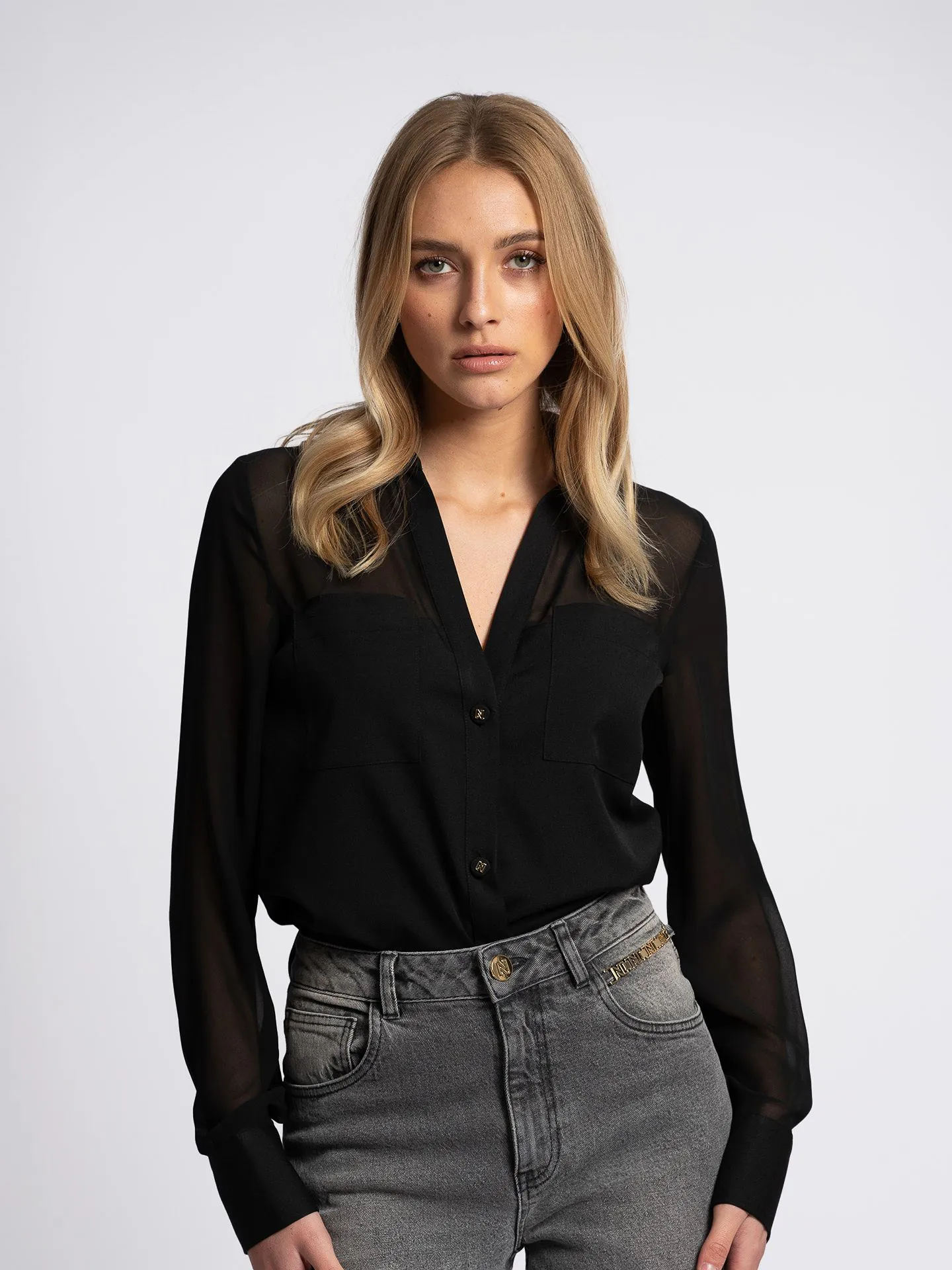 Losvallende blouse met een diepe V-hals, een knoopsluiting en borstzakken.