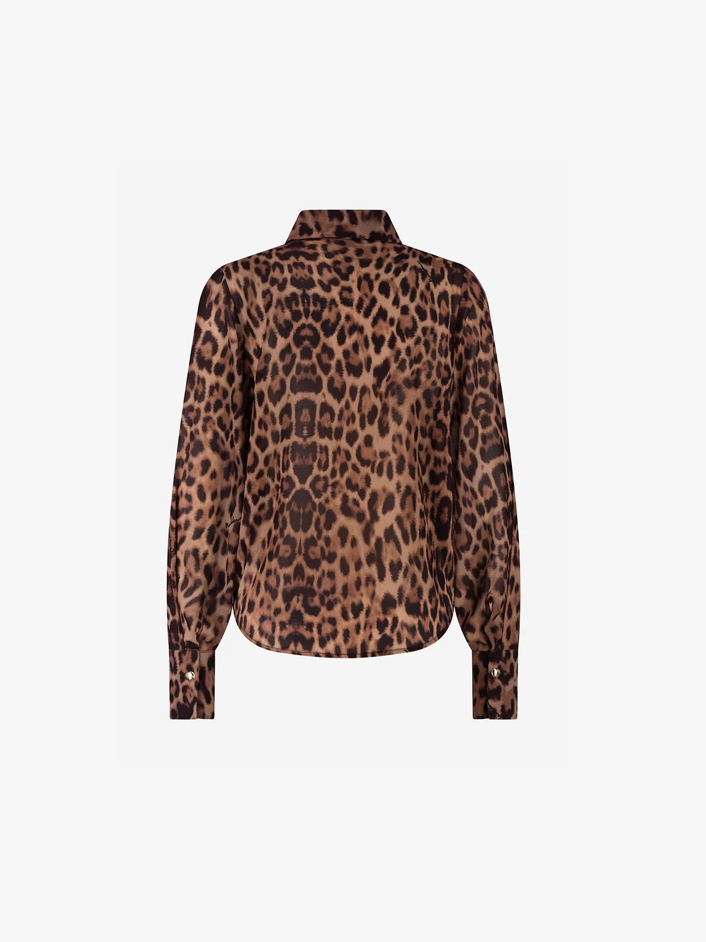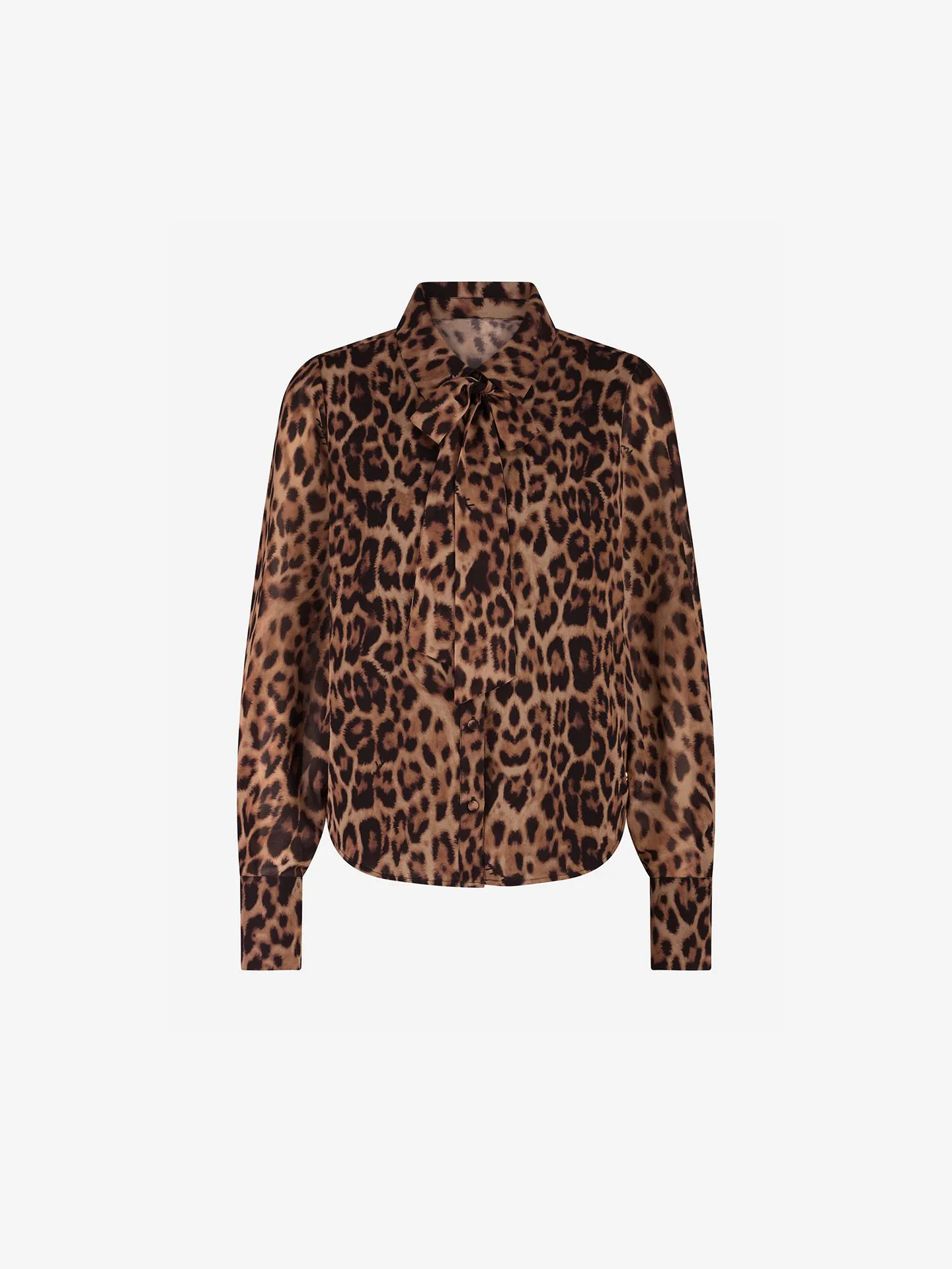 Blouse met luipaardprint, een kraag en een strikdetail bij de hals. De blouse is voorzien van een knoopsluiting en een normale pasvorm.