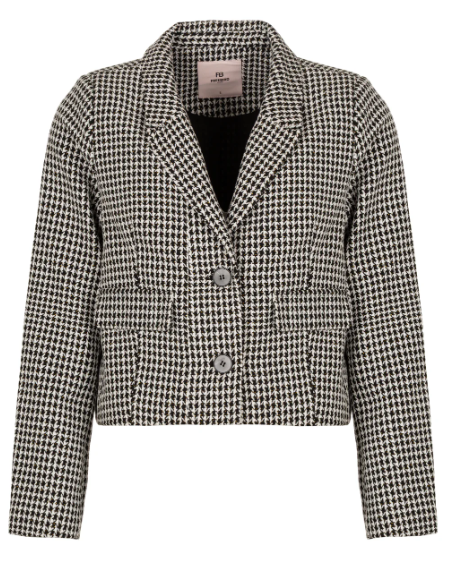 Voeg een klassieke twist toe aan je outfit met deze cropped blazer in pied-de-poule dessin. Gemaakt van een zachte jacquardkwaliteit, combineert dit item moeiteloos tijdloze elegantie met moderne flair. De schoudervullingen zorgen voor een krachtige, gestructureerde look, terwijl de korte lengte perfect balanceert met high-waisted broeken of rokken. De blazer is afgewerkt met een klassieke reverskraag, lange mouwen en een stijlvolle knoopsluiting.