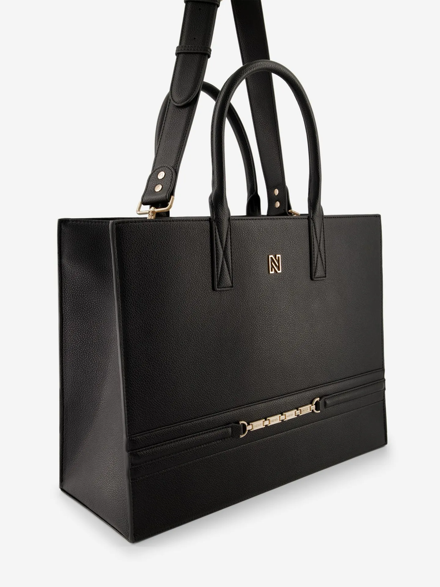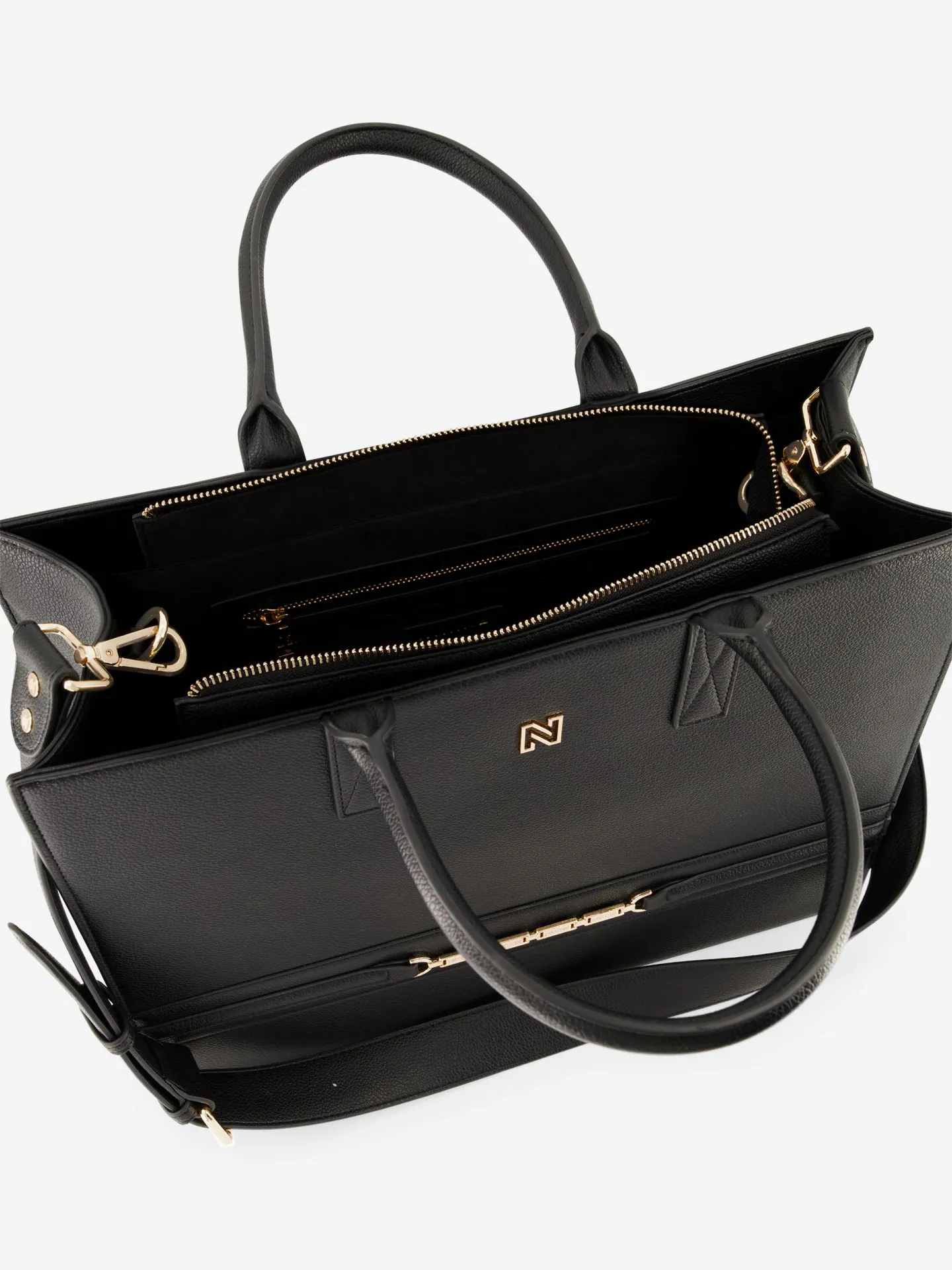 ProductomschrijvingGrote shopper van imitatieleer met een ketting detail, een subtiel N-logo en meerdere binnenvakken. De tas is voorzien van een ritssluiting, afneembare en verstelbare schouderband en dubbele handgrepen.