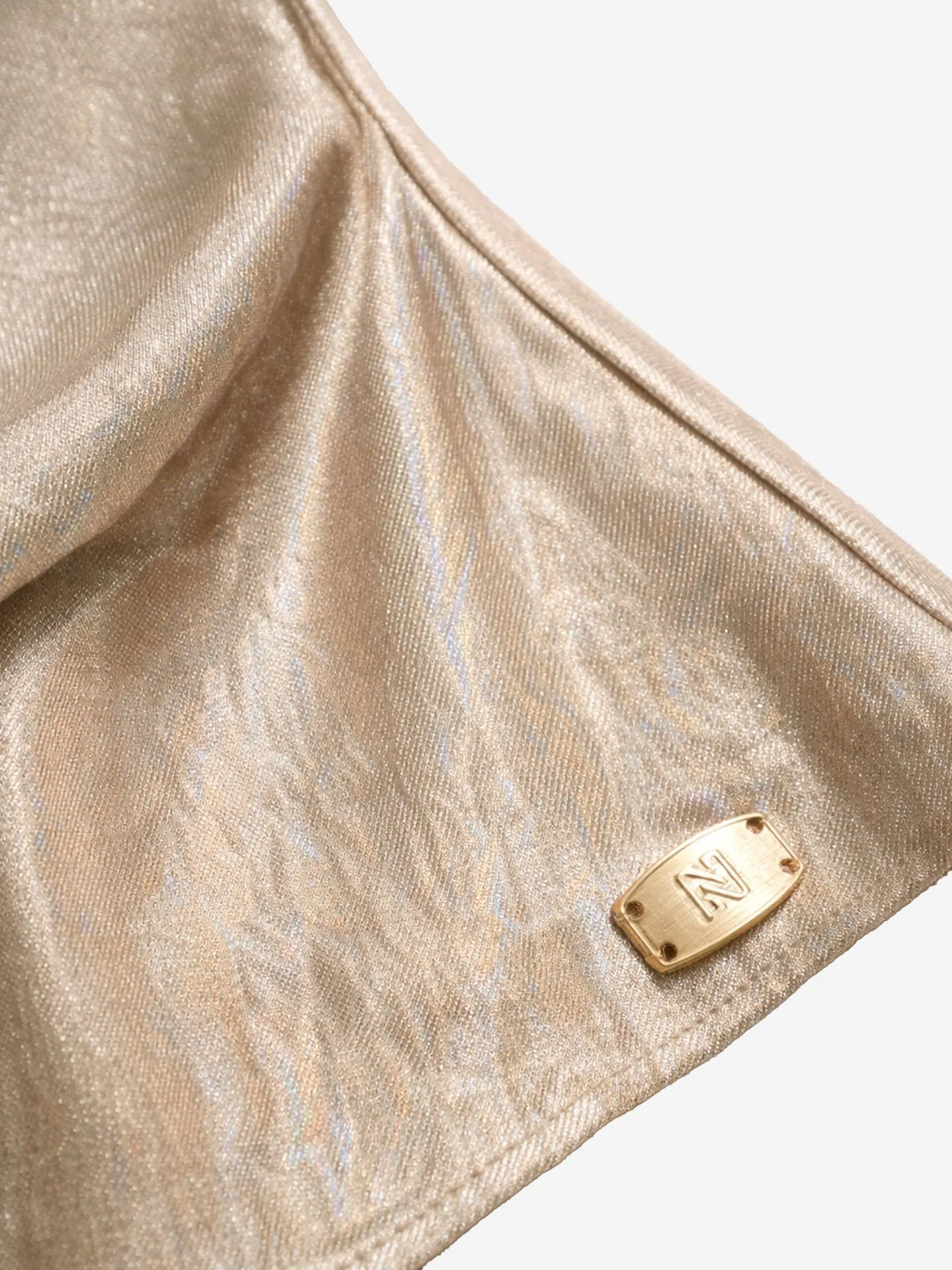 Top met subtiele glitters all-over, een ronde hals, een strikceintuur en een logo detail. De top heeft een ritssluiting en een losvallende pasvorm.