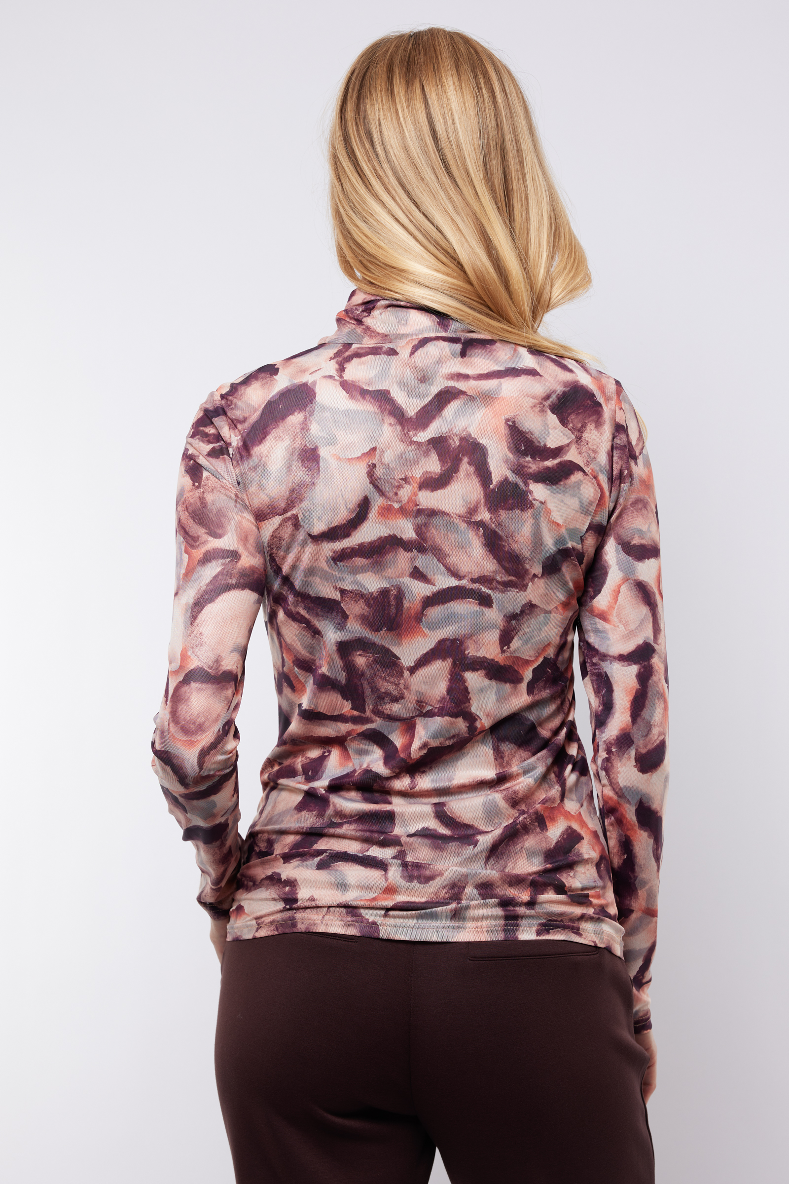 De Tyra top is jouw go-to item voor een gedurfde, maar vrouwelijke look. De hoge hals en aansluitende pasvorm zorgen voor een moderne uitstraling, terwijl het abstracte patroon je outfit nét dat beetje extra geeft. Gemaakt van een zachte mesh-stof die licht en comfortabel aanvoelt — ideaal om los te dragen of als laagje onder een blazer of vest.