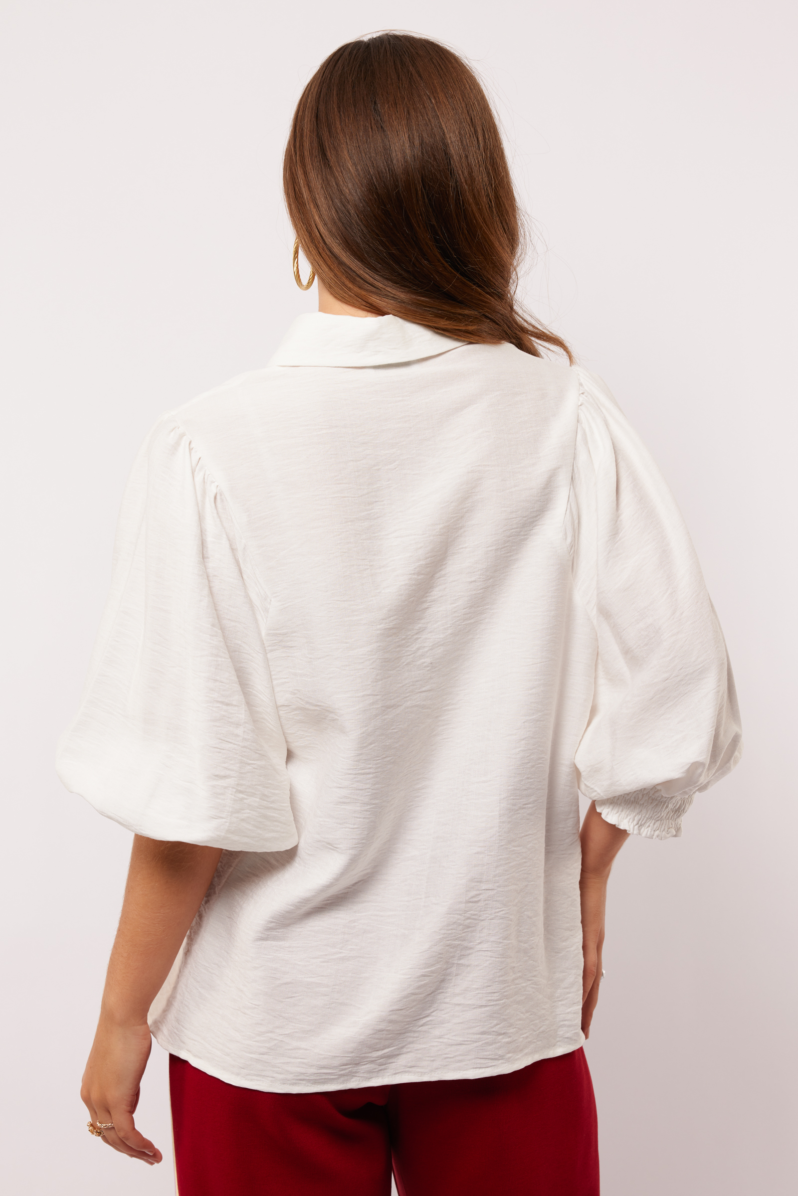 Luchtig en krachtig tegelijk. De YSRA TOP is een must voor wie houdt van volume én vrouwelijkheid. De pofmouwen, smocked manchetten en cleane kraag zorgen voor een uitgesproken silhouet. Verkrijgbaar in helder wit of zachtgroen — beiden perfect voor een look die opvalt zonder te schreeuwen.